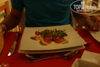 Ходили в итальянский а-ля-карт. Карпаччо из говядины и моцарелла нам понравилось,горячие блюда лосось и куриная грудка были средними,десерты вообще доедать не стали не вкусные.Обслуживание в ресторане отличное.Жаль,что не все понимают куда они пришли ведь это ресторан все таки.