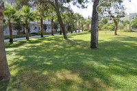 Домики стоят на зеленых полянках, много деревьев, на деревьях живность, птички чирикают, видели что-то вроде хамелеона. Отель имеет большую территорию, много зелени, все ухожено, подстрижено, некоторые деревья имеют таблички подобно ботаническому саду. Есть небольшой зоопарк - два вольера. В одном птицы - куры, голуби, павлины, в другом кролики. Петух по утрам (часов в 5) кукарекает. Но до нас его кукареки не долетали, зоопарк находился на другом конце отеля.