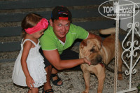 Территория отеля вся в зелени, есть, где детям поиграть (детская площадка), погулять и не боишься, что они заблудятся. Собака на входе – вообще, прелесть!