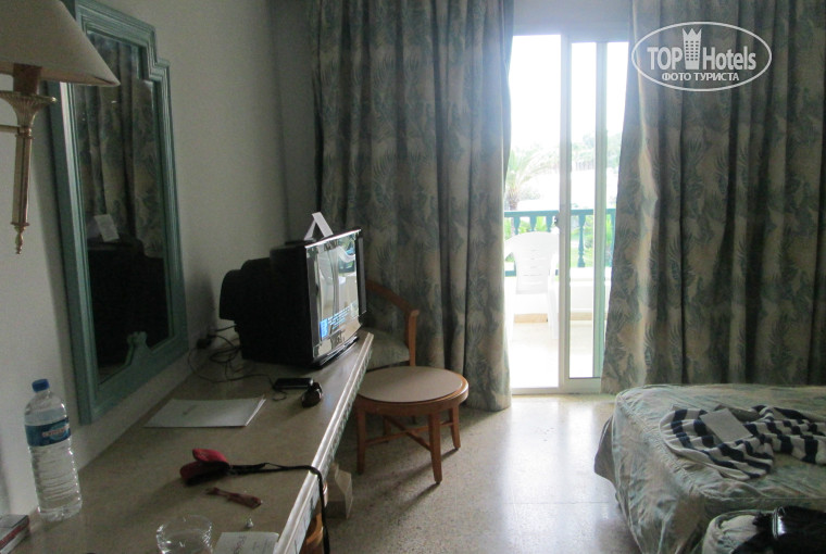 Номер не с видом на море, но зато тишина и днем и ночью. Играли в большой теннис, в принципе пойдет.
