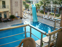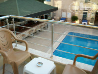 Территория: почти никакой нет, только бассейн и бар рядом с ним. Бассейн расположен между двумя небольшими корпусами отеля. Сам отель очень аккуратный, чистый. Вокруг бассейна плитку намывали регулярно, бассейн вроде чистый, но я ни разу в нем не купалась.