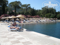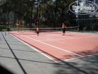 Теперь по территории отеля - все окружено соснами, чистый воздух, благодаря влажности +35 совсем не чувствуется. На пляже был пару раз - вода в конце мая (как, в общем, и всегда из-за подводных течений) холодная, не понравилась мелкая галька, а так - свободные лежаки были всегда, многие если и плавали, то погружались в воду с пирса. Далее, на территории отеля есть большой основной бассейн + 4 маленьких, теннисный корт (нужно записаться у аниматоров), волейбольная площадка (игры в 10-30 и в 16-30, играют одни русские и на очень хорошем уровне надо сказать), аквапарк (2 большие горки и 1 маленькая - я не пробовал, говорили, что взрослый человек по ходу прочувствует все стыки своей... спиной), интернет-кафе (по-моему, 5$ в час + бесплатный Wi-Fi), несколько магазинов, SPA-центр (платно), фитнес-центр, бильярд, настольный теннис (открытый, поэтому нормально не поиграешь), настольный футбол, амфитеатр (про анимацию отдельно), клуб (с 23 до 2 - хорошая музыка, но очень тесно и душно), дорогой кальян, 5 баров, 2 ресторана, вроде все…