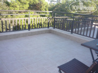 Номер двухкомнатный. Комнаты разделены дверью. В первой комнате две 1,5 кровати, во второй двухспальная. Балкон просто огромный. Под навесом стоят 2 шезлонга, также есть столик и 2 стула.
