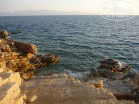 Если зайти за теннисные корты, то там спуск к морю в скалах. Очень красивое место.