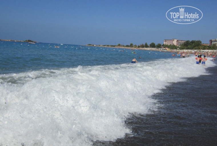 4. Море потрясающее! Чистое, теплое. Заход разный по пляжу, где-то резковат, а где-то вполне пологий (ближе к немецкому отелю или на диком пляже). Волны были постоянно, небольшие. Ребенка купали только под постоянным присмотром. Последние 2 дня были сильные волны. Так прикольно. Купались в них. Дочь аж хохотала от восторга. Пляж пещано-галечный. Выбирайте, где вам больше нравится. Мы предпочитали заход рядом с волейбольной площадкой. Дочке купили специальную обувь в отеле, а сами ходили в сланцах.