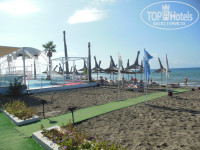 Море хоть и штормило частенько, но все равно было теплым и ласковым. Пляж песчано-галечный. Переход на пляж находится на территории отеля, что очень удобно. На территории пляжа имеется бар, отведено место для проведения ночных вечеринок, дискотек. Беседки с белым балдахином романтично вписываются в прибрежный пейзаж. Лежаки многие занимают рано утром, но мы ходили на море только купаться, а загорали у бассейна, где круглый день играла музыка и проходила анимационная программа. Рядом с морем и бассейном оборудованы душевые установки, поэтому всю соль, песок и хлорку можно сразу смыть! Везде находятся туалеты, которые идеально убираются в течении дня, средства гигиены всегда в них в наличии!