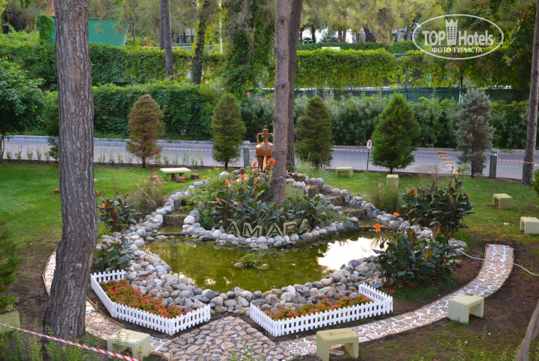 Территория - зелено, ухожено, компактно. Приятная тень соснового леса спасала от обеденного зноя.