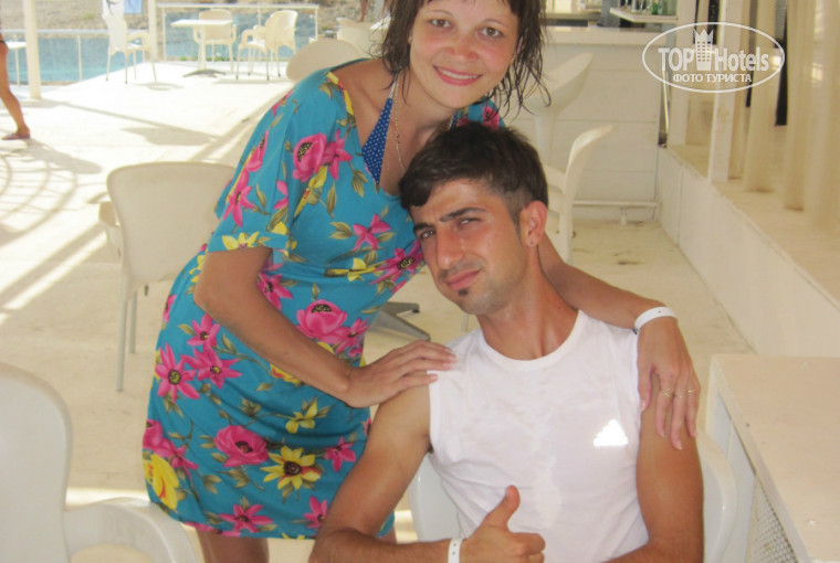 Да и вообще весь обслуживающий персонал заслуживает высшей оценки. Мальчики на ресепшене, в столовой, бармены- все дружелюбные, приветливые и общительные. По именам к сожалению не упомнила всех, знаю только Мустафу с челкой, который у меня на фото)