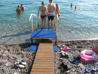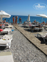 Пляж. Очень тесный, но это тоже мы знали, конечно. Сам пляж... это не галька... булыжники) В общем ходить больно без специальной обуви. Лежаков иногда (редко) свободных не было вообще, но т.к. вставали мы рано, с этим проблем не было. В волейбол играют прямо возле отдыхающих, мяч периодически прилетал в головы. В сам волейбол вообще не понимаю, как играли, куча камней, один парень порезал ногу.