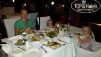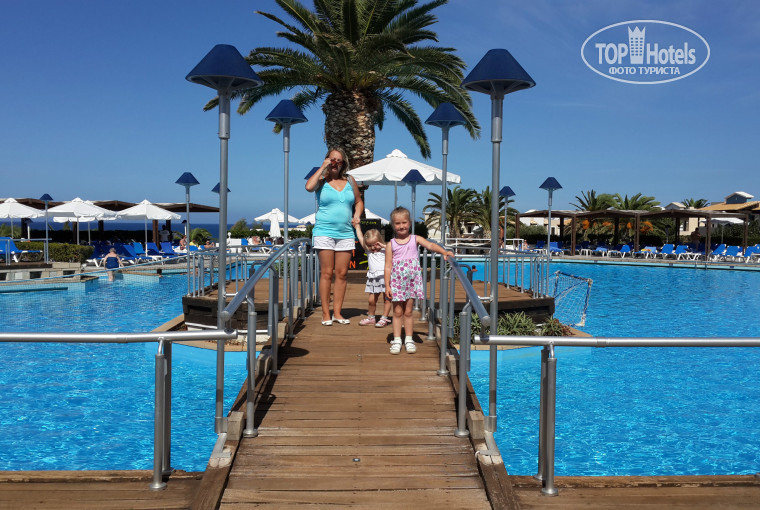Отдыхали семьей с двумя детьми 2 и 4 года. Прилетели в 16-00 по местному времени,встретили и привезли быстро. Летали от т/а Южный крест. разместили быстро. Будте готовы к тому,что в отеле очень строго с расчетным часом. Если вы прилетаете утром,то или оплачивайте дополнительные сутки,чтобы сразу заехать в номер или сидите в холле отеля до 14-00. Теперь о номере.Мы жили в Фемили румм две комнаты. Номер относительно чистый,не на 5*.В туалете по углам пыль и песок,под кроватью тоже самое. Белье и полотенца кипельно белые,выдаются мыльные принадлежности и набор для шитья. Кондиционер общий ночью совсем не охлаждает.Днем нормально.Если вы едите с детьми,то будьте готовы к тому,что стирать и гладить негде.Есть услуги прачечной,но не дешевые и приносят на следующий день.Так что берите одежду,которую не нужно гладить. Можно на рецепшене попросить таз для стирки детской одежды.Порошок или мыло возьмите с собой. Про лекарства.На территории отеля нет аптек.ближайшая в Херсонисосе.Туда можно на рецепшене заказать такси 7 евро. Аптеки скудные антибиотиков и тп там нет. Только в нос и спрей в горло. Теперь о питании.Оно разнообразное и вкусное. Одно но детских творожков,соков,пюрешек и йогуртов там нет.Каши есть на завтрак.Соки искуственные,фруктов полно,тортов и тп тоже большой выбор.Проблемы с супами.На обед только супы-пюре из овощей типо брокколи,моркови. Наши супы щи,борщи и тп дают на ужин. Ужины разнообразные на любой вкус и каждый вечер разные. И утка была и акула и суши и свинина всего не упомнишь. Рекомендую бар Фонтана и на пляже так все вкусно,просто супер. Территория отеля -это сказка.Все цветет,чистота.Кругом пальмы,гибискусы. бассейны чистые,пляж чистый. Заход в море не очень,но можно найти местечко.Море бирюзовое. Если вы хотите лежать на пляже под зонтиком,то непременно утром нужно сходить и занять,тк на всех зонтов не хватает.С лежаками не проблема,по звонку на рецепшен принесут. Про Херсонисос рекомендую вечером сьездить поужинать и погулять.Цен дешевых не ждите.Поужинать с вином на 4 примерно 130-150 евро.Забыла про анимацию.Ребята супер,очень стараются.Правда все на иностранном языке,учитывая,что 70% отдыхающих русские. Дети от дискотеки просто тащились.Алена из Литвы-ты супер!