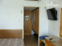 Номер стандарт с видом на море. Довольно большой. В номере двуспальная кровать, полуторка и еще диванчик. Телевизор с 4-мя русскими каналами... холодильник. При заселении в холодильник кладут одну 1,5 л бутылку воды. В дальнейшем вода не пополняется. Воду можно купить в магазинчике при отеле 0,5 евро- 1,5 л. Либо в супермаркете недалеко от отеля 1.5 евро - упаковка из шести 1,5 л бутылок. Если брать одну бутылку -0.23 евро.