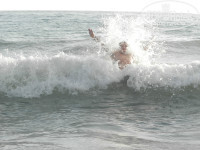 Самое замечательное- это море рядом!Либо через дорогу перейти, либо по переходу подземному.Пляж песчаный.Даже если лежаки были заняты, не проблема была расположиться на песке.В последний день нас застали волны большие,но муж и тут развлекся, прыгая в них.
