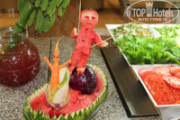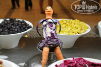 Эта тема не оставила равнодушных всех постояльцев отеля в этот период. Еда была ужасная, и это без всяких преувеличений. Отсутствие фруктов, какие то не спелые арбузы и дыни, на обед из мясных блюд предполагалось сделать гамбургер, картофельные дольки с огромными глазками, салаты из спагетти!, сладости из манки, жаренная рабы из консервов и много других неожиданностей. Перекусы между обедами и ужинами вообще волшебные - хот-доги, где вместо сосисок был сыр с огурцами!!! Один плюс – лишних килограммов мы от туда не привезли. Соки – это разведенное юпи. Алкоголь вообще отдельная тема. Алкоголь в составе которого нет его вообще. Вино кислое.