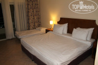 Номер у нас был стандартный, на втором этаже второго корпуса. В номере кровать, два кресла и столик, шкаф для одежды, комод, доисторический телевизор, холодильник с двумя маленькими бутылками бесплатной воды, балкон, небольшая ванна, которая достаточно плохо сливает воду. Убирались в номере чисто. Обслуживание в этом отеле вообще достаточно не плохое. Все вежливые, приветливые.