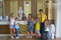 В отель мы приехали в 7 утра, на reception нас встретили "старые", добрые знакомые - Марал, Туран, Али, наши дети просто бросились к ним на шею, они так были рады. Номера у нас были в главном корпусе, были убраны по высшему классу (и вообще, к уборке притензий нет). Особенная благодарность ТУРАНУ, всегда с улыбкой встретит, поможет, разрулит любую проблему.