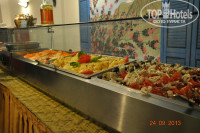 Отдельно хочется отметить питание - не стоит игнорировать плохие отзывы про еду...попав первый раз в "ресторан" были сильно ошарашены и даже не знали что взять...особенно мужская часть нашего коллектива. Очередь за макарошками, мясные продукты выдают под счет, сказать что есть что-то из десерта это просто обмануть...желе и взбитые сливки О_О ((( фрукты - арбуз и апельсин. Как бы с голоду не умрешь, но если сидишь целый день в отеле (у нас получилось в первый и последний день) от обеда до ужина не дотягиваешь. В период с 17-00 до 18-00 час полдника, если успеешь,то можешь съесть 1 порцию мороженки и выпить "кофе" или критский горный чай с печенькой...Ужин был потрясяющий (на фоне завтрака и обеда). Спиртное...лучше свое, но свое можно только в номере...дурацкие правила.