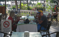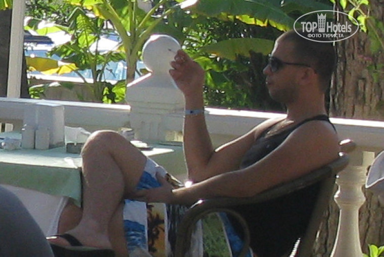 Мы очень оценили старания отеля сделать комфортные условия отдыха для всех категорий граждан. Огромное спасибо администрации, что выделила на террасе ресторана и на пляже отдельную зону для некурящих. Соотношение - примерно 600 мест на террасе для курящих (с тентами от солнца и ветра, с освещением, с мультиками по утрам) на 50 мест для некурящих (без телевизора, тента и без освещения, т.е. ужин поглощаешь впотьмах). Но мы, бедолаги некурящие с ребенком, были рады и этому. Пока не убедились, что в отеле все-таки присутствует некоторое количество людей, которые не уважают других, которым наплевать на правила, указатели, таблички и вообще на всех и вся. В зоне для некурящих курили довольно часто! Плевать, что вокруг сидят дети и в ряд стоят детские стульчики для грудничков. Подтверждающие фотографии прилагаю. Можно, конечно, таких, как мы, послать подальше - в крытый ресторан поближе к детскому столу, там не курят вообще. Но хочу заметить, что мы оплатили путевки по полной программе, для некурящих скидки не было, поэтому считаю, что вправе находиться в том месте территории отеля, где созданы условия конкретно для нам подобных. Поэтому, людей, которые способны испоганить отдых другим, в отеле предостаточно. А орда майонеза "Махеев" в составе 600 человек дополнила во всей красе эту "прекрасную" компанию. Очень печально.