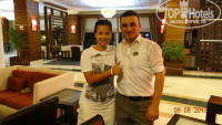 1) Заселение прошло быстро.На ресепшене нас встретил улыбчиво-Энжин(может неправильно написала имя-извиняюсь, но вроде его так звали). При возникновении вопросов по номеру -уборка, замена лампочек,предоставление вентилятора в номер-Энжин всегда сразу нам помогал.Из всех на ресепшене он был самым приятным.