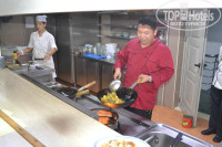 Отель выбрали с женой не сговариваясь сразу! Только по общему внешнему виду территории. Считаю это изюминкой этого отеля. Террасное расположение номеров очень красиво и нас нисколько не напрягло и не напугало. Территория совпала с нашими предварительными ожиданиями. Заселили быстро, хотя туристов было много. Обещанный вид на море первоначально разочаровал. Море было чуть в стороне. Хотелось несколько другого (об этом ненавязчиво сказали об этом на ресепшене). Какое же было наше удивление, когда на второй день отдыха предложили поменять номер. Причем предложили супер вариант с отдельным бассейном, прекрасным видом на море, двухуровневым расположением в номере ( ребенок внизу занял место, мы с женой наверху). Причем за такой обмен не попросили ни копейки доплаты! По секрету назову номер 533. Просите - не пожалеете! То, что это верхняя точка отеля и приходилось подниматься в гору после каждого приема пищи только радовало. Питание на высоком уровне, никаких претензий к кухне. Китайский ресторан "а ля карт" на любителя. Нам главного ресторана хватало. Тематические вечера на ужин каждый раз заставляли ждать чего-то новенького. Ожидания оправдывались. Анимация рядом с номером не напрягала. Она по моему вообще никого не напрягала )) Вроде и есть, а вроде нет ее. Но нам не до не было. Запомнилась поездка на автомобиле на Балос. Вид моря с горы на всю жизнь. Рекомендую брать с собой побольше воды и головные уборы. На обратной дороге в подъем ребенку "поплохело".