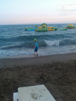 5) Аквапарк на пляже - это пять надувных фигур, на которые взобраться невозможно без специальной подготовки - лестниц к ним нет. Взобраться могут лишь некоторые мужчины, прилагая немалые усилия. Однако даже это скудное развлечение убрали после 25 сентября, когда к вечеру стали подниматься волны. Сейчас аквапарка нет. Считаю, что нужно было указывать в описании, что период работы ограничен определенными датами.
