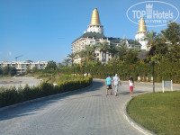 2) Второй огромный и неисправимый минус отеля - неудачное расположение по сторонам света. На территории отеля никогда не бывает солнечно и тепло. Вода в бассейнах ледяная, потому что ВСЕГДА В ТЕНИ. Купаются два-три камикадзе. С востока стоят основные корпуса отеля(6,7,8), с юга - 5 корпус, с запада территория закрыта новым строящимся отелем. На севере и так света никогда нет, так еще и вид из окна на заросшее бурьяном поле и вонючую речку с комарами(это информация для тех, кому повезет поселиться в 8 корпус). Крытого бассейна нет.
