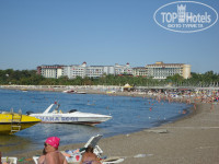 Всем здравствуйте!Писать много не буду-тут и без меня отзывов полно.Приехали 30 сентября,заселились около 14 часов.Правда номер с видом не на море,а частично на дорогу к отелю,чуть выше уровня земли.Хотелось конечно с видом на море!Но у нас было тихо и спокойно.На балконе не сидели(не за этим ехали!).Про питание уже всё сказано.Всё есть,что надо.Даже рыба была каждый день в разных видах.Чупра у них очень вкусная-костей почти нет!Записывались в оба ресторана.Всего много и вкусно.В рыбном правда,много травы-зелени накидали.На выбор 2 вида рыбы-окунь и чупра.Окунь у них-это не то,что вы привыкли видеть.Маленький и костлявенький!Выбирайте чупру!.В османском всё тоже вкусно.Про суп хочу написать отдельно.В отзывах пишут,что невкусный.Неправда!Все вкусные,особенно томатный и грибной.Только супа у них все протёртые до пюре.Суп по турецки-ЧОРБА! ЧОРБА ИСТИЁРУМ!(я хочу суп!) Про барменов тоже уже писали-согласна с ними.Есть такие,что даже не хочется подходить снова к ним.А есть и вообще классные парни.Фарук особенно!Он в лобби вечерами.Привет ему от всех нас! Аниматоры тоже классные ребята.С Олей мы познакомились накануне по инету в группе отеля в Контакте.Привезли ей малюсенький презент с родины.Ребята-заводилы!И не хочешь,да подвергнешься их чарам.Я ехала купаться и загорать,а на самом деле и стреляла из лука и винтовки,занималась степ-аэробикой!Не ожидала от себя такого.Даже на дорожке бегала. Шоу у них обалденные!Тодес отдыхает! Успехов им и процветания!И хотелось бы,чтоб они и дальше тут оставались.Чтоб можно было приехать через год-два и снова попасть в их руки! Аквапарк понравился,мы ходили в основном после 14 час.Катались почти на всех горках(кроме меня).Муж сьехал даже с Камикадзе.Мне понравился туннель-труба и ленивая горка.Я ещё раньше её высмотрела и ждала,когда приедем в отель. С красной полосатой горки скатилась пару раз с мужем на ватрушке-адреналин ещё тот.И в трубе сначала страшно,когда темно!Зато когда вылетаешь-класс! Ну и на рафтинге не удалось прокатиться-не работал. Кстати,забыла написать про уборку номеров.Убирают,если вы выставляете на электронном табло фигурку уборщицы.Если её нет-не убирают.Или не убирают ещё,если стоит рука.У нас убирал мужчина ни минус 1 этаже.Убирал качественно.Если даже мы ставили руку(Типа-не беспокоить!)-всегда спрашивал,надо ли нам мыло,шампунь и бумагу.Правда пару раз убирала женщина.Так ни о чём!Очень плохо! Ну и на рецепшене не очень понравилась русская девушка.Какая то она себе на уме. Отдыхающих много.Немцы,англичане,испанцы,турки.Тоже семьями.Всё было тихо,спокойно.Никаких пьяных дебошей не было.Мне понравилось. И ещё про пляж.На него можно идти не в обход.Почти сразу за будкой охранника есть небольшая тропка вверх вправо.Выходишь на дорогу (там типа карьера-дорога грунтовка) и идёшь прямо до домика(не знаю что за домик на отшибе).Огибаешь его справа и опять же по тропке выходишь на дорогу(обьездную)Если сразу вправо взять,то немного пройдёшь в горку и видно пляж.Если пройти чуть вперёд на вторую дорогу и тоже вправо-выйдешь на пляж мимо отеля Джустиниано.Тут немного дольше на 3-4 минуты.Тут же есть несколько магазинчиков(эдакий мини-рыночек)Но товар тут подороже,чем в Алара-базаре. На пляж можно с утра самим уйти,а обратно на автобусе приехать.Пляж был чистый,вода тоже.Правда чуть выше,на подьёме мног