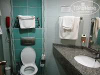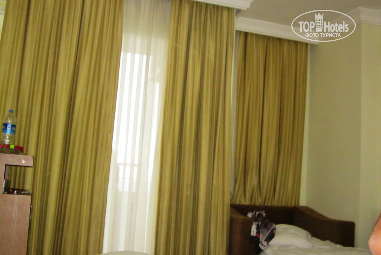 Ну начнем по порядку. прилетели в аэропорт в 4 утра, добирались до отеля около 3- х часов ( к этому мы были готовы и поэтому заранее запаслись яблоками, бананами и питьевой водой). В отель заселялись 2 семьи. Начитавшись отзывов сразу положили в паспорта 10 долларов (хотя раньше никогда и никому не доплачивали). Буквально через 5 мин. после заполнения бумаг нам предложили пройти в номер. Мы попросили сразу оформить сейф ( 15 долларов за неделю + 10 долларов залог, который при выселении нам вернули), нам дали ключ и проводили в основной корпус А на третий этаж. Номер вполне приличный: двуспальная и односпальная кровати, кресло которое нам застелили, ЖК телевизор, минибар был заполнен, но платный ( кола,вода, шоколадка по 1 евро, пиво - 2 евро). В ванной фен, телефон - все работало, правда фен дешевый, но новый. Для сравнения: в прошлом году отдыхали в 5-ке в районе Кемера фен там был совсем- совсем старый, доисторический одним словом. Душевой кабины не было было что-то похожее: плиткой выложен пол со сливом, двери раздвижные. Номер был с балконом (с видом на море, правда оно находилось через дорогу :-) ), на балконе было 2 пластиковых стула и стол.