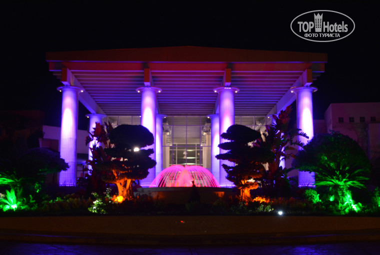 Территория большая, красивая, есть на что посмотреть. Гуляли после вечерней программы. Подсветка отеля очень красивая!