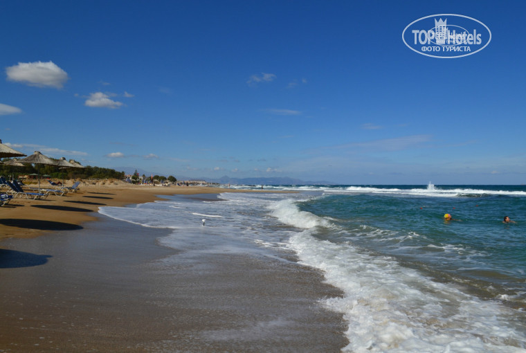 Про питание, все как и оказалось по отзывам - на твердую 5 !!! Один раз ходили в таверну, хотя можно было и 2, но все было расписано (если отдыхаешь больше 10 дней, то можно 2 раза посетить). Завтраки - практически ничего не менялось, все стандартно как и во всех европейских отелях - яйца, бекон,овощи, сухие смеси с разными наполнителями... кофе, чай из пакетиков, сладости, фрукты и много-много булочек !!! С обедом уже намного лучше - каждый день что-то новое, и супчик и горячее - всегда рыба или мясо, что пожелаешь, хоть все сразу, гарнир тоже каждый день радовали разные салаты, опять же фрукты - арбуз,дыня,апельсины,киви,виноград и яблоки! Пиво хорошее, не разбавленное, вино сколько хочешь наливай! Ужин - это какой-то калейдоскоп !!! каждый вечер ходишь и не знаешь что лучше взять, чтоб не лопнуть потом)) Вообщем оттянетесь по полной и попробуете очень большое количество национальных блюд, я даже отважилась улиток попробовать, от морепродуктов я вообще в восторге была! В таверне все готовиться на углях, маленький советик - из первой тарелки все не съедайте, оставьте места, там еще очень много дадут))