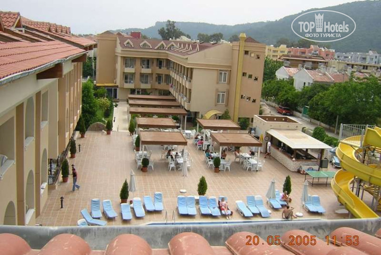 Отель весьма неплохой, если не считать вегетарианского питания (кормят в основном овощами). Номера очень даже приличные (в каждом номере кондиционер, телевизор, очень чисто и уютно). Но самое приятное, то что он находится в самом центре города: здесь есть куда сходить вечерком, пляж в 15 минутах ходьбы, полно туристических агенств, отправляющих в любые туры в 2,5 раза дешевле, чем Ваш гостиничный гид. Вообщем, если колбасу купить в супермаркете Кемера, там вполне неплохо...