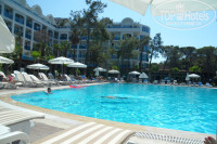 Всем привет.Я не очень умелый пользователь пк и честно говоря просто хотела посмотреть отзывы других туристов о Майечке но с удивлением обнаружила что их нет, , и решила исправить несправедливость и рассказать о чудесном месте оставившим самые теплые,вкусные,веселые,сказочные и .....много других приятных впечатлений.Отель новенький номера небольшие,выполнены в европейском стиле,очень уютные есть все что необходимо,вся мебель новая,тв- плазма,душевая кабина,электронный ключ.Уборка ежедневно,качественно,неназойливо- приходишь с пляжа а в номере чистота,лебеди целуются.Питание как и в большинстве отелей Турции по системе все включено,голодным не останешься,шеф повар всегда в ресторане на виду(серьезный такой дядька- красивый,солидный-короче внушает доверие)особенно понравилась кухня в Турецкую ночь:барашек на вертеле,лепешки,шаурма вспомнишь слюньки текут.Персонал очень терпеливый я бы сказала,весь негатив от невоспитанных туристов( а такие к сожалению есть везде) они выдерживали с достоинством.Много русскоговорящих,вообще турки очень позитивный и добрый народ(это мое мнение и я его никому не навязываю и поэтому спорить с пессимистами не буду).Территория отеля не большая,но места хватает всем,расположение отеля очень выгодное в стороне от дороги,но в тоже время прогуляться по окресностям или съездить на автобусе в Сиде или Манавгат за 1,5 доллара, устроить шоппинг всегда можно.Пляж метров 300 по дорожке,очень полезно и совсем не напрягает.Бар на пляже:картошечка фри,огурчик под пивко после заплывов в море такой кайф.Анимация:Галя,Серхан,Нина и все все ребята- такие молодцы ненавязчиво и прикольно: конкурс Мистер отель,пенная вечеринка на пляже,турецкая ночь,мини-диско СУПЕР!Отдельный респект массажисту Кадиру-профи высший пилотаж-рекомендую.Руководство отеля очень оперативно реагирует на любые замечания в адрес персонала,менеджеры всегда на чеку,разруливают все в 5 секунд.Итог:бюджетно,прилично,достойно,хочется посетить еше раз.PS:В разговоре с отдыхающей парой услышала фразу: не мы ищем негатив,он сам нас находит. К счастью негатив ищет не всех,а избранных.Желаю всем кто едит на отдых не попадать в число избранных этим господином.
