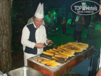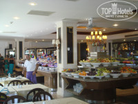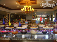 ПИТАНИЕ: мы кушали в основном ресторане, который находится на втором этаже, утром кушали внутри, а днем-вечером выбирали место на террасе, с видом на море и бассейны, там очень красиво. Выбор блюд просто умопомрачающий, есть всё, что вы только пожелаете. На завтрак различные оладьи, блинчики, выпечка, йогурты своего производства, хлопья, фрукты, сладости, также конечно более серьезные блюда яичница, сосиски, салатики... На обед и на ужин выбор такой, что с трудом вспомнится хоть половина блюд. Постоянно что-то новое, и супы и вторые блюда и закуски. Меня больше всего радовало наличие 3 раза в день огромного выбора сладостей, пахлавы, тортиков, мороженого, фруктов. Кстати мороженое можно брать бесплатно в течении дня на пляже, также как и алкогольные и без/а коктейли и любые напитки в любом количестве. В ресторане утраивали дни французской кухни, подавали улиток, лягушачьи лапки и т.п. На террасе все время что-то готовили на открытом огне: рыбу, мясо, морепродукты. Первое время от желания попробовать всё, набирали огромную тарелку, а потом уже, поняв что нравится больше выбирали самое вкусное для себя. В общем питание там просто на высшем уровне!!! я была в Египте, Шри Ланке есть с чем сравнить питание.