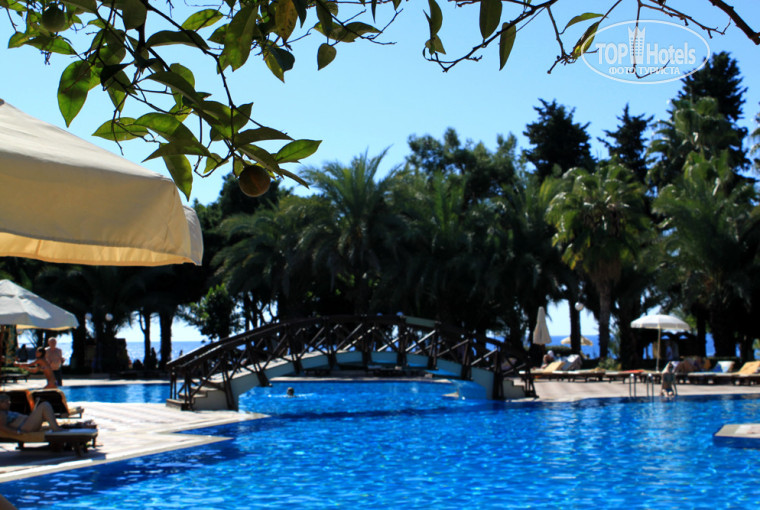 Очень все красиво и культурно. Много зелени, пальмы, цветы. Мандариновый сад. Там же спортивные площадки. Территория большая, но компактная. Все рядом. Только 6 корпус чуть в отдаленности стоит, у него собственный большой бассейн, там намного тише и спокойнее, кто не любит суету - туда. Там же у 6 корпуса 3 аля карт ресторана и ирландский паб. Очень колоритный)) Диско в помещении с 12 до 2 ночи. Анимация около 22 часов в амфитеатре. Хамам как везде. Цены стандартные для отелей. 40 усд стоит комплекс: пилинг, массаж. Можно выбить скидку. 20 усд только пилинг. Вай фай в общественной зоне. У кого-то и в номере ловил.