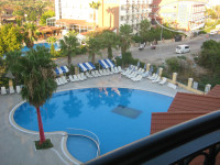 встретили хорошо, заселили в течение 20 минут, номера были нормальные, кого не устроили, то переселили на следующий день. номер попался с видом на бассейн и немного на море, все работало, убирали каждый день, но не особо тщательно.. но, в принципе, белье и полотенца меняли, так что нас устраивало. Персонал вежливый, особенно на ресепшн, всегда пытались помочь, вплоть до того, что меняли подушки, потому что те были неудобными... питание однообразное изо дня в день, мясо было мало, много сыра типа брынзы, овощи в разных видах, сладостей мало, алкоголь пили свой. покупали экскурсии у отельного гида, но потом узнали, что на улицах тоже самое в два раза дешевле..из экскурсий покупали хамам (ездили куда то , что типа спа центра), поездку на яхте и Памуккале! всё очень понравилось! анимация веселая, но достаточно однообразная, до 11 или 12 часов, потом они всем предлагают ехать в клубы. вобщем, отель нормальный, но для тех кто много где был и особенно в 5* лучше туда не ездить! а так можно поехать, и если не придираться к мелочам (сломанный шезлонг, иногда не работал лифт)то можно вполне хорошо отдохнуть!