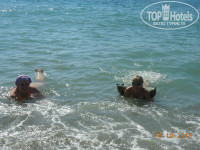 Вход в море для меня был удобным. Я не знаю глубоко ли было у берега, так как пользовалась специальным приспособлением для плавания (не знаю как еще эту штуку обозвать). Я плохой пловец и плаваю чуть получше топора, поэтому глубину измерить не рискнула.