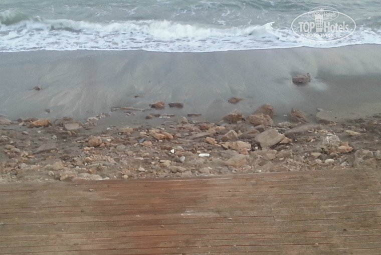 Территория отеля по площади нормальная, там нет садов по которым можно гулять, но есть водные горки, с которых мы накатались от души! Снек бар у горок и мороженное - съедобное, недовольства не было. Море было еще прохладное, но вот как в него зайти - это был вопрос! Фото входа в море прикреплю.