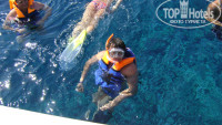 Ну ладно-не жрать приехали,наслаждаться теплом и морем!Гид Пегаса Самех-ещё тот фрукт!На собрании как всегда пугал-не покупайте экскурсии у других,страховка не действует!!Отдайте ваучер,я его в полиции буду отмечать,пишите на обороте куда поедете,иначе вас полиция не выпустит из отеля!!!Мы сначала хотели брать экскурсии у Ибрагима,но оказалось,что перед нашим приездом Пегас вытурил его с территории отеля!!!Сказали Самеху,что не знаем куда поедем,так к вечеру получили от него письмо в номер со значительными скидками на экскурсии!Вышло дешевле намного,чем на собрании!Ездили на 5 часовое сафари,гоняли по пустыне на квадриках и на остров Утопия,насмотрелись на шикарных рыбок!!Хотели в аквапарк Джангл-но от Пегаса возят только в Синдбад!Поэтому ездили в наш любимый Джангл аква парк от уличного бюро.Как выходишь из отеля нужно повернуть налево и пройти метров 200,после пустыря и стройки будет здание незаселённое,там на первом этаже экскурсионное бюро,все экскурсии намного дешевле,чем у Пегаса!!!Синдбад аквапарк какой-то нищенский,а в Джангле мы отдыхали в 2010 году в самом отеле,там шикарный Аквапарк!!Кстати там же магазинчик с очень дешёвыми фруктами,наши там набрали гранатов за какие-то копейки по 10 кг.