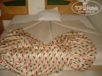Заселение. Приехали в 6 утра, дурацкое правило заселения в 14.00 сыграло свою отрицательную роль, т.к. сходив на завтрак, к бассейну и морю захотелось скорее в номер, разобрать вещи и почувствовать себя дома. Но пришлось ждать. Хорошо придумали, что за стойкой гест релейшен сидят русские девочки, всегда выслушают, объяснят и помогут чем смогут. Обратившись к ним объяснил, что в Дессоле мы 2-ой раз , они проверили и когда получили подтверждение одели нам золотые браслеты. На ресепшен нам дали номер на 2-ом этаже, с видом на море (правда только в 12 часов), а на следующий день принесли в номер тарелку с фруктами. Кстати, как уже писали ранее, у сотрудников ресепшен лица какие-то озлобленные и они тебя как-будто не слушают. Но когда я угостил каждого из троих шоколадкой "Алёнка", случилось чудо, со мной стали разговаривать с улыбкой на лице. Заселили нас в корпус 7\25, от главного здания далеко, но зато тихо и рядом самый дальний маленький бассейн, возле которого мы потом часто загорали, потому, что там никого не было и никто не мешал. Номер достался уютный, недавно отремонтированный, всё работало. Мебель как и везде в Египте старенькая, новые были две кровати (которые сразу сдвинули), диван и ЖК-телевизор по которому потом смотрели скачанные с инета фильмы через usb. Балкон в сторону моря, но вид в основном на нижестоящие корпуса, в промежутках между ними на море.