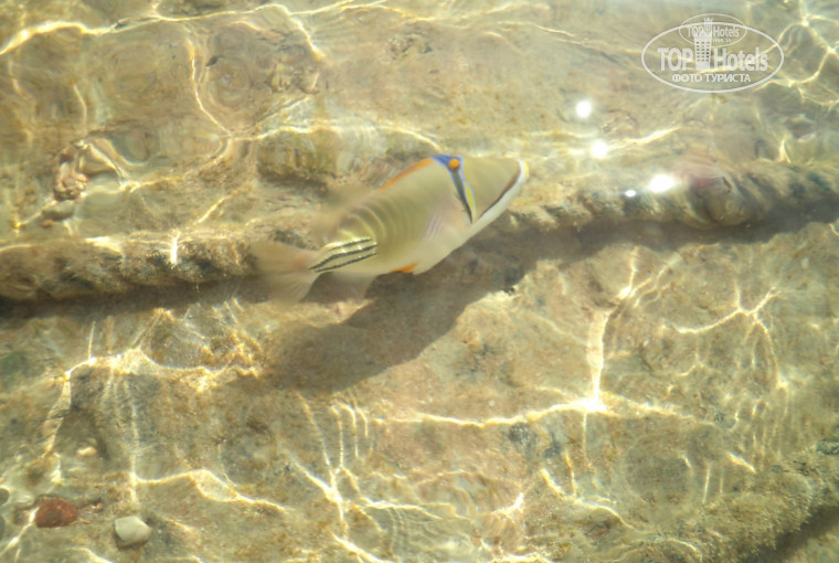 Пляж у отеля собственный довольно не плохой.Лежаки приличные,лучше чем в соседней пятёрке)места всегда есть.Полотенце можно менять один раз в сутки,в других отелях такого не замечал.За пляжем следят,мусор убирают своевременно.Плавать идти по понтону метров 50.Слева всегда были волны по больше справа потише но красный флаг(купаться запрещено) при мне ни разу не вешали.Рыб много,видов 15 точно особенно если по плавать вдоль рифа до других отелей,так что скучно в море не было,маски берите обязательно! Теперь про бар на пляже: открывался он всегда в часов 9 а то и в 10. Пиво при мне ни разу не кончалось как писали ниже,может мне повезло)))ближе к обеду приносили булочки(минигамбурги)чай кофе лимонад.Крепкие алкогольные напитки тоже всегда были но они нас не интересовали.Очередь при баре если и была то терпима.Жаль ни разу не было мороженного,в четвёрках обычно оно всегда есть.