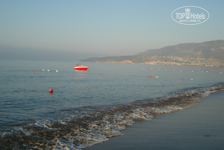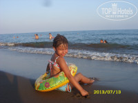 Море теплое и приятное, волны совсем маленькие. Поскольку пляж песчаный, у берега вода мутновата. Вход в воду с оптимальным умеренным уклоном. В полосе прибоя, когда входишь в воду, приходится переступать через полосу камушков шириной с полметра, но как то это не шибко напрягает. Шезлонгов на пляже и в прибрежном парке много, практически всем хватает, но привыкли мы все занимать заранее….. Особенно хорошо на море утром!!!