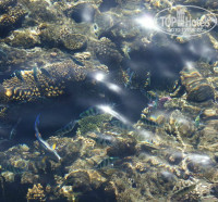 Территория ухоженная, красивая, очень много зелени.Море чистейшее!!!!!!До обеда прилив, после обеда отлив, но есть пирс, так что поплавать всегда удавалось.Много разных рыбок, плавать очень интересно!!!Заход в море только в тапочках!!!!Пляж понравился- уютно, красиво!!!