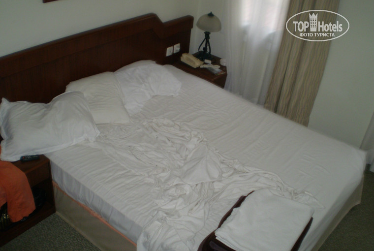 Размещение было не помню в каком корпусе (потому что в этом отеле их 6) но для нас это было не слишком важно, т.к. помимо сна проводили в номере не более полутора часа в день. В целом номер прибранный - светлый, мебель приличная, сантехника также нареканий не вызвала; в номере был достаточно большой шкаф, комод 2спальная кровать, кровать для ребенка лет 14 - 16 и детская кроватка, телевизор, холодильник, сейф. И 2 кондиционера - по одному на жилую комнату. Маловато показалось гигиенических средст (шампуни, мыла, зубная паста) но это не могло хоть как то повлиять на впечатления. Также нам не очень повезло с балконом - он выходил в непосредственной близости с вытяжкой одной из комнат кухни - соответсвенно при открытых окнах был постоянно слышен гул двигателя, но если окна закрыть - то звук не было слышно и благодаря кондииционеру сон был вполне приятным ( так что минусом этот момент называл совсем капризный турист). В холодильник приносят только негазированную воду.