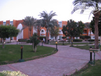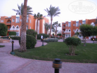 Территория большая. Отдельно стоящие корпуса. Много зелени. Три бассейна. Вся ухоженная, цветущая, разнообразная. С наступлением сумерек, хорошо освещается. Приятно бродить как днем, так и ночью. За все время пребывания (7 ночей) запах дыма чувствовала лишь однажды (как я понимаю, травили насекомых). На территории Мамлюка все совсем иначе: восточный стиль, немного иные корпуса, ручеек (довольно длинный), через него множество мостиков. Сейчас обе территории украшены к Новому году, везде стоят елки, символическая иллюминация... Все сверкает и сияет! Довольно празднично и необычно на фоне пальм)))