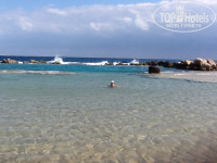Ветер действительно сильный, но, на наш взгляд, оградительные заборчики от него достаточно хорошо помогают. А в воде он почти не чувствуется.