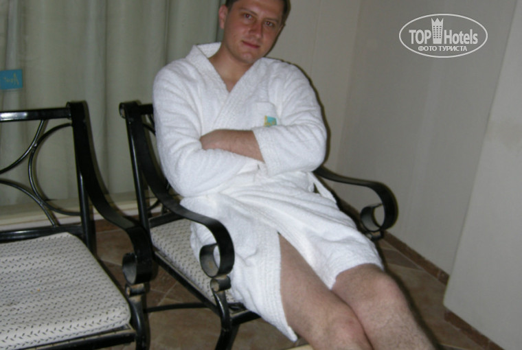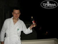 Номер оказался весьма просторным и хорошо обустроенным. Обращало на себя внимание наличие большой гардеробной комнаты, в которой располагался сейф. Мебель вся из камня и это, в нашем случае, являлось скорее достоинством, чем недостатком, т.к. значительно снижало вероятность что-либо сломать по пьяни. Балкон оказался больших размеров, с прекрасным видом на море. Плохо лишь то, что там не оказалось пепельницы и пришлось сделать ее из православного граненного стакана, который привезли с собой. Санузел также весьма просторный, с видом на море. Жидкое мыло присутствовало. Какие-либо иные косметические средства (зубная паста, гель для бритья, шампунь и т.п.) отсутствовали, однако нас это нисколько не смутило ибо привезли все свое. В номере имеется несколько телефонов, но мы ими не пользовались, также есть разъем для проводного интернета, но ноута с собой не брали. Присутствует мини-бар, пополняющийся ежедневно питьевой водой и колой (фантой, спрайтом), имеется чайник, кофе в стиках, чай в пакетиках, сахар, сливки. Кондиционер работает исправно, однако шумит достаточно громко и не имеет пульта ДУ, однако это сущие пустяки. Уборка номера производится ежедневно, довольно неплохо, однако без особой тщательности. Уборщику ежедневно оставляли чаевые 1-2 доллара. Возле раковины в душевой иногда наблюдалось небольшое количество бегающих муравьев, однако на них мы не обращали особого внимания. Стены отеля довольно толстые, что позволяет обеспечить высокий уровень звукоизоляции. Так, мы почти каждую ночь включали музыку на большой громкости, пили виски, и громко разговаривали и подпевали, однако соседи не жаловались) Лишь однажды, часа в три ночи мы переместились с колонкам на балкон и включили ДДТ, и вскоре выбежал немец-сосед, бормоча что-то непонятное и жестом показывая убавить громкость)