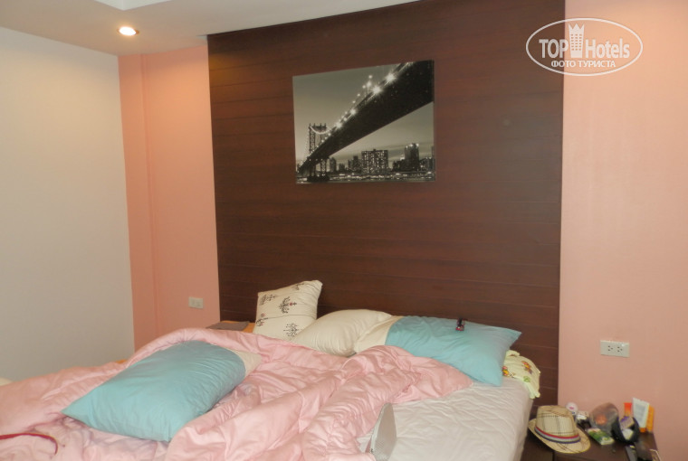 В Тае была первый раз, отель удивил, но не так, чтобы я была в шоке, мы знали что это 2 звезды (стоимость тура была небольшая), поэтому особо ничего сверхъестественного не ждали. Тем более, что это не отельный отдых. Сам отель новый, мебель новая,НО ничего не убирается и не моется, вообще они в части чистоты не заморачиваются. Депозит 200 батт, фен 30 батт, гель и шампунь везите с собой. Полы в номерах не моют, туалетную комнату вообще не убирают, только ставят бумагу, постель меняют, воду дают ежедневно. Полотенце дают одно. С бассейном нам повезло, он работал, купоны брать на ресепшене, вода холодноватая. Да шумно, рядом дорога и стройка, но на третью и последующие ночи как-то к этому привыкли. Завтраки можно и разнообразить, давали все 10 дней одно жареное яйцо, два ломтика хлеба, 1 ст. л. салата, два ломтика ветчины и 2 сосиски (наша напополам). Мы покупали в севенэлевене (стоит прям за отелем в железную калитку) сладости к чаю. Пляж довольно чистый, но мы уходили далеко налево, если стоять к пляжу лицом, т.к. рядом многоэтажный отель и здесь тесно на пляже, лежаки 40 батт. Мы были в Тае в циклон, ветер, волна, тайцы мерзнут, нам хорошо. Вода 26-27 градусов, воздух 29. Если кто-то возьмет экскурсию на реку Квай берите теплую одежду, там холодно, это севернее. В библио-глобусе все экскурсии дорогие, у местных бюро дешевле напополам, вдоль пляжа их много. Если стоять лицом к пляжу, направо вверх обменный пункт, дальше вечерний рынок, можно поесть прям там недорого. Вдоль пляжа в кафе дороговато. Днем мы ели в кафе уличном, где обедают тайцы, это если смотреть прямо на пляж, то налево, прямо,за первым перекрестком подальше пройти и будет их кафе, оно прям у тротуара под зонтиками. Вечером проходили дальше (далековато конечно), ели у Джеда, в кафе все стены обклеены отзывами туристов, там 2 или 3 кафе таких с отзывами на стенах. Вкусно и не дорого, опять же порции для мужчин! Были на крокодиловом шоу - ерунда, но опять же на вкус как говорится. Вообще тайцы улыбчивый народ, спокойный. Отдых удался, на все эти отельные мелочи не стоит обращать внимание, в конце концов вы приехали отдыхать и посмотреть страну, а не отель (но это конечно если тур не дорогой, если да, то обидно, с этим согласна!). Если есть вопросы - пишите. Счастливого отдыха. P/S загружу фотки номера, сорри за бардак))))).
