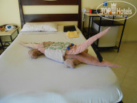 Заселили в стандарт (стандарты - маленькие номера, на четырех - не развернуться), но за 40у.е. через 2 ночи переселили в огромный фемели рум (с ванной комнатой как у меня гостиная дома,- 20 кв.м., ванна, унитаз, биде, 2 умывальника, махровые халаты))). Все работает, горячая вода постоянно, плазма на 32дюйма. Хаускипер радовал фигурками из полотенец нашу детвору - то человечки, то крокодилы... - молодчага!!! Расставил нашу с кумой косметику по всей ванной комнате, как ему нравится - забавно было)))