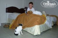 На территории отеля очень много кошек они одинаковой окраски порой кажется что тебя посещают глюки т.к. кошка была только в ресторане оп ля и она на ресепшене. Такое ощущение что за каждым бунгалом закреплена своя кошка. В отзывах пишут что у бассейна по ночам собираются пьяные компашки которые не дают спать за все время не было ни одной а вот орущие кошки это да. Так же на территории были замечены змеи не большие и тут становиться ясным зачем нужны кошаки. В России кошки охотятся на мышей а в Тае на змей.