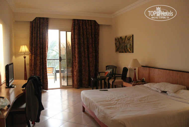 Отдыхали в этом отеле в конце декабря. Приехали в отель за 10 минут, на ресепшене спросили хотим ли хороший номер, ну мы конечно хотели! За это удовольствие заплатили 20$. Заселили сразу, 14 часов не ждали. Вообщем номер не оправдал ожиданий - мебель старая, в ванной душ течёт просто на пол, по телевизору ни одного русского канала! Какой бы был номер без доплаты???... Правда номер с видом на бассейн, с большим балконом и на третьем этаже (4-ый корпус), сантехника работала, горячая вода была всегда (хотя многие туристы подходили на ресепшен и жаловались, что у них нет горячей воды). Что удивило, так это пустой мини-бар! За день только 1 бутылку воды приносили и всё. Ну да ладно, это не так уж и важно. Расположение номера отличное просто - близко до ресторанов и ресепшена.