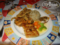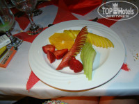 2. Питание. Все очень вкусно, 5- поставила только за ассортимент, просто я люблю рыбу, а был только морской язык (который за неделю меня достал), но и крабов давали и кальмаров, но рыбы хотелось бы на гриле больше видов, тем более что Красное море такое богатое. Мы с мужем ездили на такси в ресторан Ель-мина рыбный, вот там душу отвели правда света не было мы при свечах сидели, вот там выбор конечно супер, а порции можно лопнуть, с собой забрали в отель целый пакет, на следующий день на пляже доедали. А еще познакомились с женщиной которая в этом отеле 7-й раз. Так вот как постоянному посетителю, им и тапочки и халаты, и массаж бесплатно и бильярд. Так вот она сказала что раньше в этом отеле только фруктов было видов 15 за один прием пищи (а сейчас видов 7) финики, апельсины, очень вкусные, дыня, гуава, бананы, клубника, яблоки. Очень удивило, что подходят повара спрашивают "Вкусно?" Официанты "все хорошо?" понравилось?"